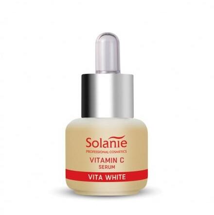 Solanie Vita White C-vitamin szérum, 15 ml- Kezd a napot megújult bőrrel - Használd a kedvenc Vita white nappali vagy éjszakai arckrémed előtt a világosabb és egyenletesebb bőrtónus eléréséhez - E- és C- vitamin tartalmának köszönhetően felveszi a harcot a bőrt károsító szabadgyökökkel szemben - Niacinamid összetevője fokozza a bőrbarrier struktúrális és funkcionáli