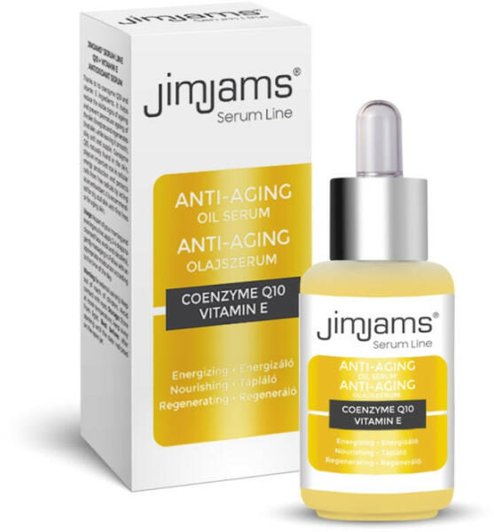 Q10 koenzim és E-vitamin összetevőinek köszönhetően segít csökkenteni a bőr öregedésének látható jeleit és megelőzni a bőr idő előtti öregedését. Energizálja és regenerálja a fáradt bőrt, miközben az simább megjelenésű, selymesen puha és rugalmasabb lesz. JimJams Serum Line Q10 + E- vitamin Anti-aging olajszérum (30 ml) EnergizálóTáplálóRegen erálóQ10 koenzi