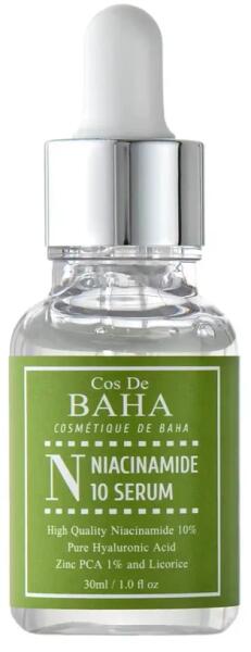 Gyulladáscsökkentő szérum zsíros bőrre Cos De BAHA Niacinamide 10 Serum hatékonyan küzd a pattanások és akné ellen, megelőzi a gyulladások kialakulását, világosítja a pattanások utáni foltokat és a nem kívánt pigmentációt. Sebumszabályozó tulajdonságokkal rendelkezik, mattítja a bőrt, és segíti a pórusok szűkítését. A szérum 78%-ban organikus összetevőkből
