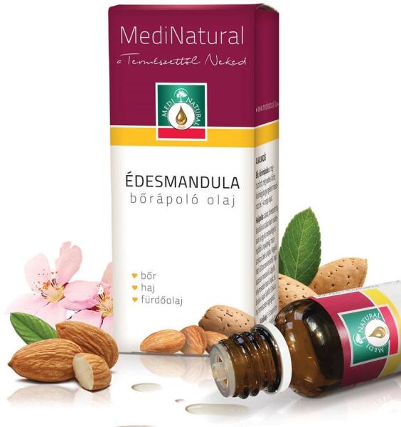 Az édesmandula olaj védi, táplálja és nyugtatja a bőrt, kiválóan táplál és hidratál, bőrpuhító hatással bír. Száraz, húzódó bőrre tökéletes enyhülést hoz, felveszi a harcot a szarkalábakkal, enyhíti a viszkető bőr tüneteit.