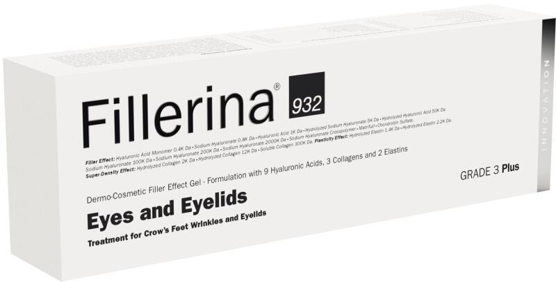Szem- és szemhéjápoló Fillerina 932, Grade 3 Plus, 15 ml A Fillerina 932 Eyes and Eyelids 9 különböző típusú hialuronsav molekula keverékéből áll, amely nagymértékben behatol a bőrrétegekbe (ex vivo teszt Franz Cells-szel): így segít fenntartani a ráncok és szövetek feltöltő hatását, ill. szemhéj átalakítás. A hialuronsav molekulák hatását 3 féle kollagén moleku