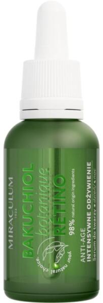Miraculum Bakuchiol, 30 ml, arc szérumok nőknek, A kiváló minőségű Miraculum Bakuchiol arcszérum magas aktívanyag tartalmú készítmény. Ennek köszönhetően a legfényűzőbb módon ápolja az arcbőrét. Tulajdonságok: segít kisimítani a ráncokat és a finom szarkalábakat helyreállítja a bőr rugalmasságát hatékonyan hidratál és táplál tömörré teszi az arcbőr világ