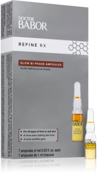 BABOR Doctor Babor - Refine RX Glow Bi-Phase Ampoules, 7x1 ml, arc szérumok nőknek, Az arcszérum magas aktívanyag tartalmú készítmény. Ennek köszönhetően a legfényűzőbb módon ápolja az arcbőrét. Tulajdonságok: világosít védi az arcbőrt a káros külső hatásokkal szemben egységesíti az arcbőr színárnyalatait hatékonyan hidratál és táplál Használata: Gyengéden ü