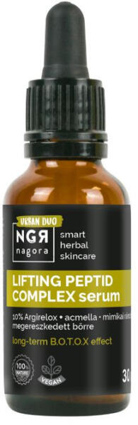 A b. o. t. o. x hatását utánzó Argireloxpeptid szérum mimikai ráncokra, megereszkedett bőrre, hosszú távú hatással. Duo: 10% Argirelox + acmella + bio hársfa Funkció: 10% Argirelox : a b. o. t. o. x hatását utánzó Pentapeptide-18 + ráncok mélységét csökkentő Hexapeptide-8 szinergiája acmella: bizonyítottan javítja a bőr feszességét, tónusát bio hársfa: nyugtatja, ra