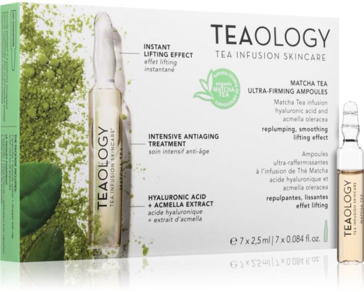 Teaology Anti-Age Matcha Tea Ultra-Firming Ampoules, 7x2,5 ml, arc szérumok nőknek, Úgy érzi, hogy bőrének többre van szüksége, mint amit a krémek nyújtanak? A kiváló Teaology Anti-Age Matcha Tea Ultra-Firming Ampoules arcszérum tökéletes kiegészítője bőrápolási rutinjának – kényezteti és intenzív ápolásban részesíti bőrét. A magas hatóanyag-koncentrációnak kö