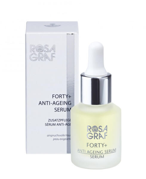 Rosa Graf Forty+ Anti Aging szérum, 15 ml - Gyorsan felszívódó nappali szérum, szőlőmag és szólaolaj, valamit tejsav (AHA) tartalommal - Fő hatóanyagai a szójabab és szőlő kivonat nagy mennyiségben tartalmaz isoflavonokat és polifenolokat, amelyek csodálatos eredménnyel képesek lassítani a bőr öregedését - Szenzációs Botox hatású termék, amely a homlok vonalak, szarka