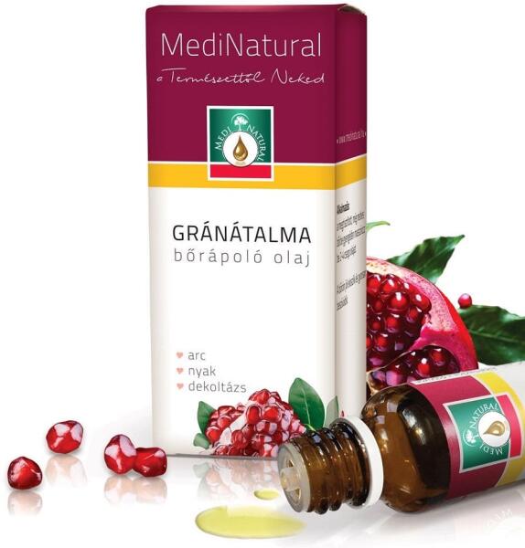 A gránátalma bőrápoló olaj segíthet a bőr öregedésének gátlásában, a bőr rugalmasságának javításában. A gránátalma olaj különleges vitamin és antioxidáns tartalmával, védi a bőrt a környezeti ártalmaktól, és hozzájárul a rugalmasságának megőrzéséhez.