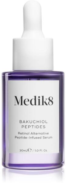Medik8 Bakuchiol Peptides, 30 ml, arc szérumok nőknek, A kiváló minőségű Medik8 Bakuchiol Peptides arcszérum magas aktívanyag tartalmú készítmény. Ennek köszönhetően a legfényűzőbb módon ápolja az arcbőrét. Tulajdonságok: segít kisimítani a ráncokat és a finom szarkalábakat javítja a bőrhibákat egységesíti az arcbőr színárnyalatait Használata: Gyengéden ütö