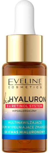 Eveline Cosmetics Bio Hyaluron 3x Retinol System, 18 ml, arc szérumok nőknek, Úgy érzi, hogy bőrének többre van szüksége, mint amit a krémek nyújtanak? A kiváló Eveline Cosmetics Bio Hyaluron 3x Retinol System arcszérum tökéletes kiegészítője bőrápolási rutinjának – kényezteti és intenzív ápolásban részesíti bőrét. A magas hatóanyag-koncentrációnak köszönhet