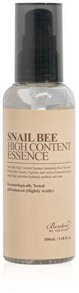A korábbihoz képest 66%-al nagyobb kiszerelésben (100 ml a korábbi 60 ml helyett) teszi mindazt, amit eddig is, több szinten segíti a bőr regenerálódását, vitalitásának emelését. A megújult formula 61.11% tiszta csiganyálka szűrletet, továbbá 6-féle Peptidet, 2% Niacinamidot és Adenosint is tartalmaz. A BENTON Snail Bee High Content Essence 61%-ban csiganyálka kivonatból, v