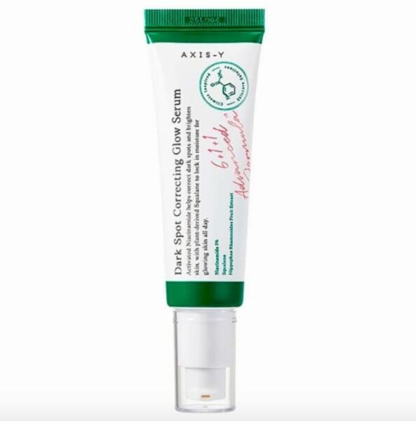 AXIS-Y Dark Spot Correcting Glow Serum világosító szérum korrigálja az egyenetlen bőrtónust, fehéríti a hiperpigmentációt, világosítja a szeplőket, pattanások utáni foltokat és a fényöregedés jeleit. Hidratálja és puhítja a bőrt, nem okoz irritációt, és kíméletesen hat. Egyenletes bőrtónust és egészséges ragyogást kölcsönöz, javítja a bőr textúráját, és
