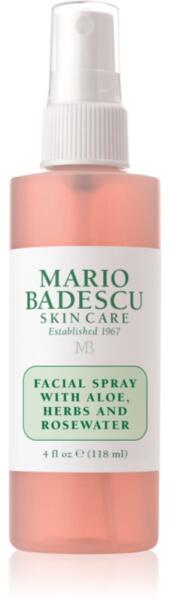 Mario Badescu Facial Spray with Aloe, Herbs and Rosewater, 118 ml, Vízpermet arcbőrre nőknek, A kiváló Mario Badescu Facial Spray with Aloe, Herbs and Rosewater spray azonnal felfrissíti, hűsíti vagy hidratálja az arcbőrt. A nap bármely szakában felélénkíti a bőrt, és kellemes frissességérzetet biztosít – mintha csak most lépett volna ki a zuhany alól. Tulajdonságok: friss