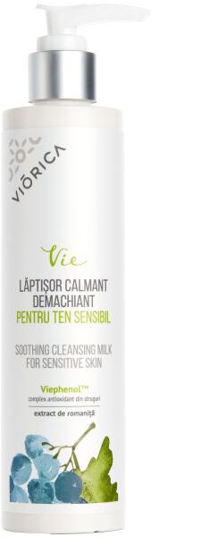 Viorica Vie Nyugtató hatású sminklemosótej A bőr tisztítása elengedhetetlen, ha szép és egészséges arcbőrt szeretnénk. Arclemosótej amely koncentrált, mégis gyengéd formulával rendelkezik, nemcsak tisztít, hanem ápolja is az érzékeny bőrt. A szabadalmaztatott Viephenol szőlőmag antioxidáns komplex, 5 természetes kivonat és 2 vitamin tökéletes kombinációja hatékonya