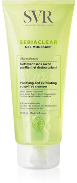 SVR Sebiaclear Gel Moussant, 200 ml, Bőrtisztítás nőknek, Nagyon fontos, hogy alapos tisztítással előkészítse a bőrét, mielőtt elkezdi a rendszeres bőrápolási rutinját – enélkül a további ápolás közel sem lenne olyan hatékony. A(z) SVR Sebiaclear tisztító készítmény segít eltávolítani a bőrön és a pórusokban a nap folyamán vagy az éjszaka folyamán lerakódot