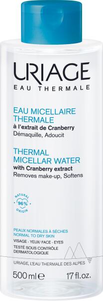 Termálvíz alapú, hidratáló micellás arc- és sminklemosó - Normál vagy száraz bőrre. (Micellák + Vörösáfonya kivonat)Kíméletesen távolítja el a szennyeződéseket és a sminket az arcról és a szem környékéről. Tökéletesen tisztít, miközben óvja a bőr hidrolipid védőrétegét. Hidratáló hatású. Kellemes, friss érzést kölcsönöz a bőrnek. Kitűnően tolerált