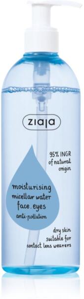 Ziaja Moisturising, 390 ml, Bőrtisztítás nőknek, A minőségi Ziaja Moisturising micellás víz pár perc alatt alaposan eltávolítja a sminket az arcáról, ugyanakkor megtisztítja az arcbőrét a mindennapi szennyeződésektől és az elhalt hámsejtektől is. Tulajdonságok: még a vízálló sminket is eltávolítja mélyrehatóan hidratál ápol és regenerál Összetétel: legalább 95
