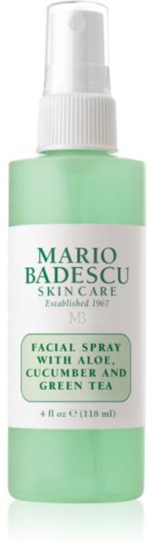 Mario Badescu Facial Spray with Aloe, Cucumber and Green Tea, 118 ml, Vízpermet arcbőrre nőknek, A kiváló Mario Badescu Facial Spray with Aloe, Cucumber and Green Tea spray azonnal felfrissíti, hűsíti vagy hidratálja az arcbőrt. A nap bármely szakában felélénkíti a bőrt, és kellemes frissességérzetet biztosít – mintha csak most lépett volna ki a zuhany alól. Tulajdonságok:
