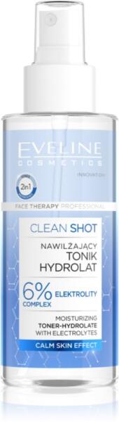 Eveline Cosmetics Clean Shot 6% Electrolyte Complex, 150 ml, arctonikok nőknek, A minőségi Eveline Cosmetics Clean Shot tonizáló készítmény segít teljesen megtisztítani, harmonizálni és felfrissíteni az arcbőrét. Tulajdonságok: finommá, üdévé és ragyogóvá teszi az arcbőrt eltávolítja az arcbőrről a szennyeződéseket és a faggyút nyugtató hatású hidratálja és tá