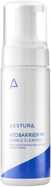 Regeneráló arctisztító hab , az AESTURA Atobarrier 365 Bubble Cleanser gyengéden, mégis mélyen tisztítja a bőrt a cég szabadalmaztatott technológiájával. Hatékonyan tisztítja a pórusokat, eltávolítja a szennyeződéseket, sminkmaradványokat és a felesleges faggyút. A hab nagyon kíméletes a bőrhöz, segít eltávolítani az elhalt hámsejteket, a felesleges faggyút és más