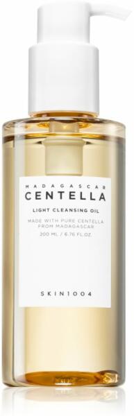 Könnyed, olaj alapú arctisztító, amely gyengéden távolítja el a sminket, szennyeződéseket és naptejet anélkül, hogy csípné a szemkörnyéket. Minden bőrtípusra kiváló választás a dupla lemosás első lépésének. A SKIN1004 Madacascar Centella Light Cleansing Oil olajos arctisztító hatféle növényi olajat tartalmaz. Az olíva-, jojoba- és napraforgóolaj kíméletesen tá