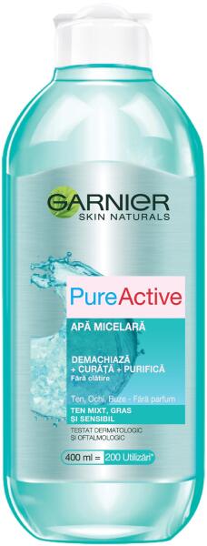 Garnier Skin Naturals Pure Active Micelláris víz, 400 ml A minőségi Garnier Pure micellás víz pár perc alatt alaposan eltávolítja a sminket az arcáról, ugyanakkor megtisztítja az arcbőrét a mindennapi szennyeződésektől és az elhalt hámsejtektől is. Jellemzők: mélységében tisztítja a pórusokat előkészíti az arcbőrt az arcápoló készítmények alkalmazására frissít