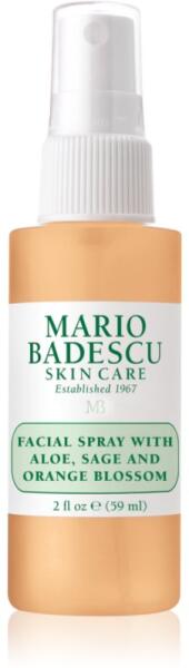 Mario Badescu Facial Spray with Aloe, Sage and Orange Blossom, 59 ml, Vízpermet arcbőrre nőknek, A kiváló Mario Badescu Facial Spray with Aloe, Sage and Orange Blossom spray azonnal felfrissíti, hűsíti vagy hidratálja az arcbőrt. A nap bármely szakában felélénkíti a bőrt, és kellemes frissességérzetet biztosít – mintha csak most lépett volna ki a zuhany alól. Tulajdonságok