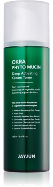 Jayjun Okra Phyto Mucin Deep, 150 ml, arctonikok nőknek, A minőségi Jayjun Okra Phyto Mucin tonizáló készítmény segít teljesen megtisztítani, harmonizálni és felfrissíteni az arcbőrét. Tulajdonságok: finommá, üdévé és ragyogóvá teszi az arcbőrt hidratálja és táplálja az arcbőrt nyugtat és tonizál regenerálja az arcbőrt Használata: Gyengéd mozdulatokkal vigye fel