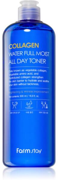 Farmstay Collagen Water Full Moist, 500 ml, arctonikok nőknek, Az arctisztítás és az azt követő bőrápolási rutin közötti átmenet ugyanolyan fontos, mint maga a tisztítás. A kiváló Farmstay Collagen Water Full Moist tonik ezen folyamatok egyes lépéseit nagyszerűen összeköti, és a bőrápolást még hatékonyabbá teszi. Gondoskodik a bőr alapos megtisztításáról, eltávol