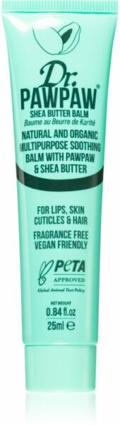 Dr. Pawpaw Shea Butter, 25 ml, helyi ápolás nőknek, A minőségi Dr. Pawpaw Shea Butter ajakbalzsam nélkülözhetetlen segítség az ajkak érzékeny bőrének minden évszakban történő ápolásához. Tulajdonságok: mélyrehatóan hidratálja és intenzíven táplálja az arcbőrt nyugtatja az arcbőr irritáltságát regeneráló hatású Összetétel: vegán termék Használata: Vigye fe