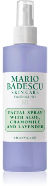 Mario Badescu Facial Spray with Aloe, Chamomile and Lavender, 236 ml, Vízpermet arcbőrre nőknek, A kiváló Mario Badescu Facial Spray with Aloe, Chamomile and Lavender spray azonnal felfrissíti, hűsíti vagy hidratálja az arcbőrt. A nap bármely szakában felélénkíti a bőrt, és kellemes frissességérzetet biztosít – mintha csak most lépett volna ki a zuhany alól. Tulajdonságok: