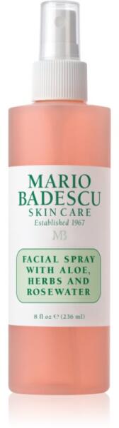 Mario Badescu Facial Spray with Aloe, Herbs and Rosewater, 236 ml, Vízpermet arcbőrre nőknek, A kiváló Mario Badescu Facial Spray with Aloe, Herbs and Rosewater spray azonnal felfrissíti, hűsíti vagy hidratálja az arcbőrt. A nap bármely szakában felélénkíti a bőrt, és kellemes frissességérzetet biztosít – mintha csak most lépett volna ki a zuhany alól. Tulajdonságok: friss