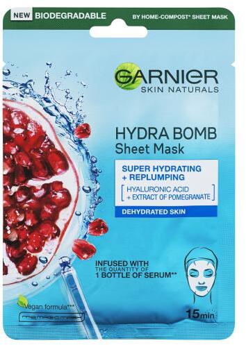 Tapasztalja meg a Garnier Skin Naturals Moisture + Aqua Bomb rendkívüli hidratálást ígérő fátyolmaszk hatását! Az összetételében gránátalma-kivonat, hialuronsav és glicerin szerepel. Együtt gazdagon táplálják és felfrissítik a bőrt, miközben segítenek megtartani a kellő nedvességet a bőrsejtekben.
