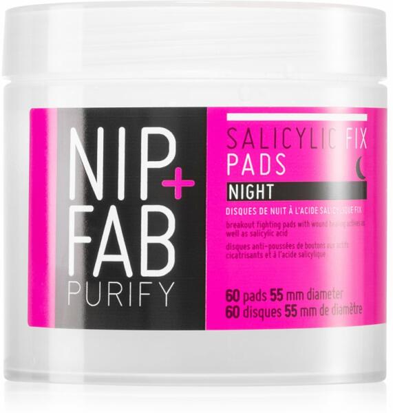 NIP+FAB Salicylic Fix, 60 db, Bőrtisztítás nőknek, A mindennapi ápoláshoz a minőségi NIP+FAB Salicylic Fix arctisztító készítmény jelenti a megfelelő választást. Tulajdonságok: szabályozza faggyúképződést mélyrehatóan hidratál regeneráló hatást fejt ki kellemesen frissít Összetétel: vegán termék Használata: Ne öblítse le.