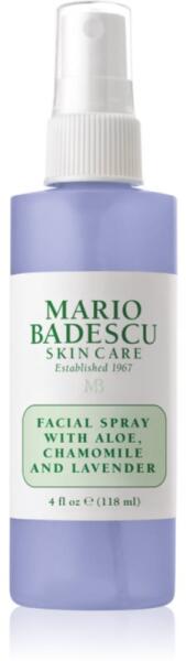 Mario Badescu Facial Spray with Aloe, Chamomile and Lavender, 118 ml, Vízpermet arcbőrre nőknek, A kiváló Mario Badescu Facial Spray with Aloe, Chamomile and Lavender spray azonnal felfrissíti, hűsíti vagy hidratálja az arcbőrt. A nap bármely szakában felélénkíti a bőrt, és kellemes frissességérzetet biztosít – mintha csak most lépett volna ki a zuhany alól. Tulajdonságok: