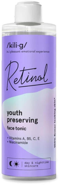 Kili. g arctonik retinollal, 250 ml - A retinol erejével a hatékony anti-aging bőrápolásban!- Arctonik retinollal (A-vitaminnal), a bőr tónusának és világosításának növelésére, valamint a finom ráncok csökkentésére - Nagy molekulasúlyú hialuronsavval és panthenollal (B5-vitamin) kiegészítve a hidratálásért - Tengeri hínár kivonatot is tartalmaz, amely bőrfeszesítő