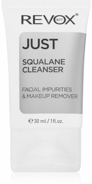 Revox B77 Just Squalane Cleanser, 30 ml, Bőrtisztítás nőknek, A minőségi Revox B77 Just sminkeltávolító készítmény tökéletesen eltávolítja az arcról a sminket és minden egyéb szennyeződést, miközben selymessé és tisztává teszi az arcbőrt. Tulajdonságok: hatékonyan távolítja el az arcbőrről a sminket teljesen tisztává teszi az arcbőrt hidratálja az arcbőrt mega