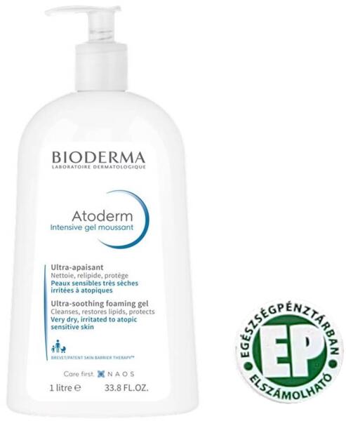 BIODERMA Atoderm Intensive Gél Moussant 1000ML: Nyugtató, tisztító és viszketéscsillapító hatású habzó gél nagyon száraz, atópiás, érzékeny bőrre. Az Atoderm Intensive gel moussant tisztító, aktív összetevői és PP-vitamin tartalma révén megakadályozza a súlyos bőrszárazságért felelős mikroorganizmusok elszaporodását. Megszünteti a kellemetlen diszkomfort érzé