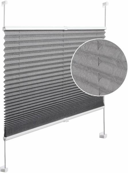 A harmónika roló dekoratív megoldást jelent a különböző terekben. A fokozatmentesen állítható roló finom szerkezetű anyagból készült, napfény és belátás elleni védelemként is használható. Felszerelés után a pliszé függöny nagyon egyszerűen, fokozatmentesen állítható a két kezelősín segítségével. A szélessége (max. 15 cm) egyszerűen lerövidíthető, nyíl
