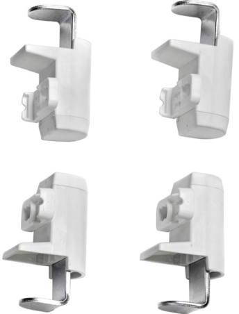 Rögzítőelemek raffrolók, pliszék, harmónika rolók, reluxák ablakkeretre rögzítéséhez. Nem kell lyukat furni a falba, a mennyezetbe vagy az ablakkeretbe. Billenthető ablakok billentését nem akadályozza. Fémből és műanyagból. aluminiumból és fából készült ablakokra is. Méret: kb. 4 × 6 cm A felszerelés módja: ablakra Szín: fehér 4 db rögzítő