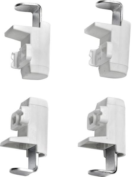 Rögzítőelemek raffrolók, pliszék, harmónika rolók, reluxák ablakkeretre rögzítéséhez. Nem kell lyukat furni a falba, a mennyezetbe vagy az ablakkeretbe. Billenthető ablakok billentését nem akadályozza. Fémből és műanyagból. aluminiumból és fából készült ablakokra is. Méret: kb. 4 × 6 cm A felszerelés módja: ablakra Szín: fehér 4 db rögzítő