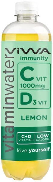Viwa immunity c1000 vitaminvíz 600 ml A Viwa Immunity felfrissít és fokozza szervezetünk védekezőképességét. Csökkentett energiatartalmú, szénsavmentes üdítőital fruktózzal, steviával, C-vitaminnal és D3 vitaminnal. Összetevők: ásványvíz, fruktóz, citromlé 1,4% (sűrítményből), vitaminok (C, D3), étkezési sav (citromsav), savanyúságot szabályozó anyag (nátrium-ci