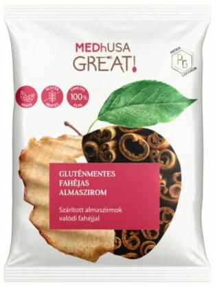 1 tasak 1 egész almát tartalmaz. Természetes rostforrás. Hozzáadott cukor, olaj és aromák nélkül készült. Természetes módon előforduló cukrokat tartalmaz. Kiszerelés: 25 g Az almaszirom a jonatán almák természetes ízét és vitamintartalmát tartalmazza. A hozzáadott valódi fahéj nem csak ízletes, de számos egészségügyi előnye is van, mint például a vércukorszint sz