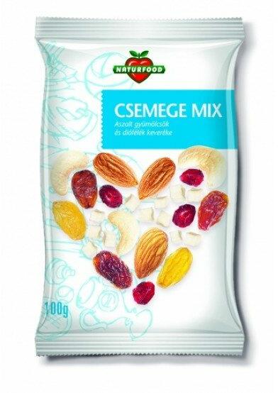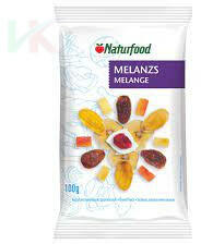Naturfood melanzs 100 g Összetevők: Mazsola (mazsola, napraforgó olaj), kandírozott papaya (papaya, cukor, antioxidáns (kén-dioxid)), kandírozott ananász (ananász, cukor, étkezési sav (citromsav), antioxidáns (kén-dioxid)), banán chips (banán, cukor, kókuszolaj, méz, aroma), aszalt, édesített vörös áfonya (vörös áfonya, cukor, napraforgó olaj), arany mazsola (mazsola, nap