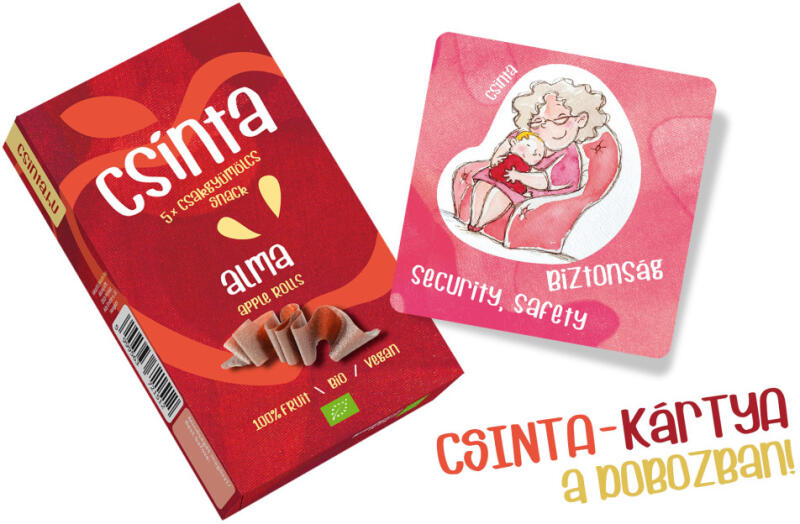 Csinta bio alma csinta 5db-os 60 g Bio Szárított gyümölcstekercs almából. Összetevők: alma és semmi más. Száraz hűvös helyen, zárt csomagolásban tartva finom marad.