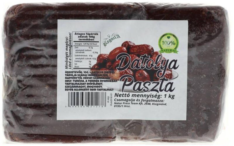 Datolya paszta A datolya összetevői biztosítják a gyors energiaellátást. Magas rosttartalmának köszönhetően enyhén hashajtó hatású és helyreállítja az egészséges bélmozgást. A datolya egyes összetevői koleszterinszint-csökkentő hatást váltanak ki. Gazdag káliumban és alacsony a nátrium tartalma, ez segíti, hogy a pulzus és vérnyomás megfelelő legyen. A datolya je