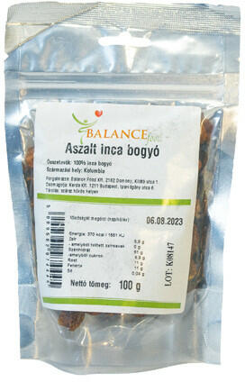 Az aszalt inca bogyó egy finom és egzotikus gyümölcs, amely gazdag antioxidánsokban és ásványi anyagokban, mint például a kálcium, a vas és a cink. Ez a bogyó a perui Andokban őshonos, és az inka kultúrában már évszázadok óta fogyasztják. Az aszalt inca bogyó édes és savanykás íze miatt kiválóan felhasználható desszertekhez, müzlikhez és salátákhoz is. Emellett a