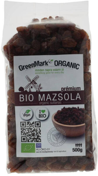 Prémium szultána mazsola a Greenmarktól. Organikus, vegán, GMO-mentes aranymazsola. Ellenőrzött ökológiai gazdálkodásból származó ízletes aszalt gyümölcs.