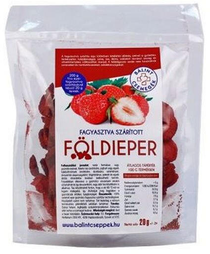 Fagyasztva szárított gyümölcs. 20 g-os csemege; Bálint cseppek termék gyümölcstea, müzli készítéséhez.