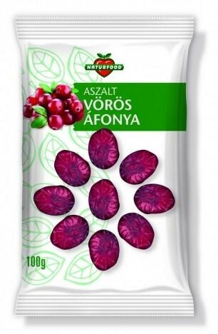 Aszalt vörösáfonya. Nádcukorral. Összetevők: vörös áfonya, nádcukor, növényi olaj. Származási hely: Kanada. Kiszerelés: 100 g 100g tápértéke: Energia: 329 Kcal, 1337 kJ Zsír: