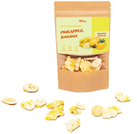 A liofilizált banán ropogós, fagyasztva szárított banán, amely egyedülálló ízével és aromájával elnyeri el tetszésed. A fagyasztva szárítás nagyon alacsony nyomáson történő mélyfagyasztás. Ez megszabadítja a gyümölcsöt a víztől, és a fagyasztva szárított gyümölcsökre jellemző ropogós állagot kölcsönöz neki. A fagyasztva szárított banán ideális sütésh
